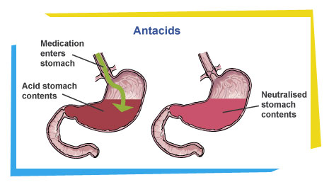 Antacids are mild alkaline substances which work by neutralizing acidity in the digestive juices, thereby reducing irritation of the stomach lining and allowing eroded areas in the mucus layer to recover.