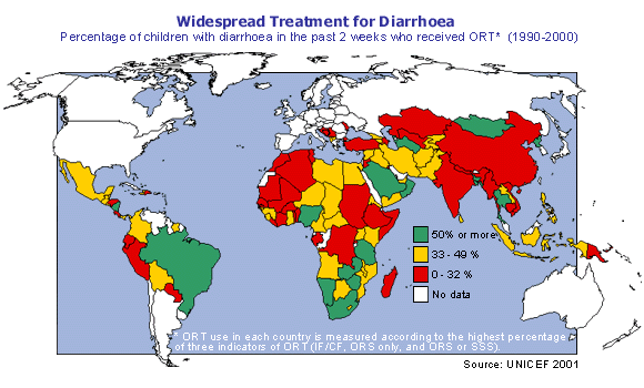 This is considered one of the best methods for treatment of acute diarrhea. Use of oral rehydration therapy decreases the risk of death from diarrhea by about 93%. ORT is considered to be a foundation or cornerstone of treatment for cholera.